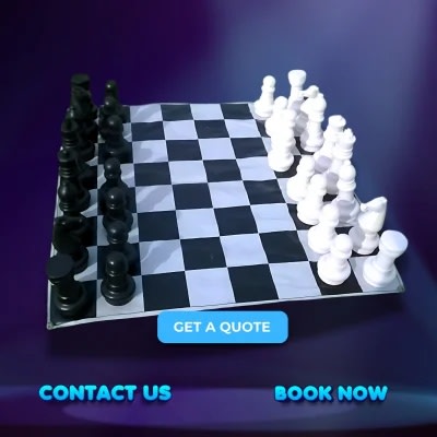 Our nationwide Giant Chess Hire service ensures that you can bring this large-scale game to any venue. The oversized chessboard and durable pieces are designed for easy setup and use, making it an ideal addition to outdoor events and spacious indoor venues. Rent giant chess for your next event and offer guests the chance to engage in a friendly competition while enjoying a relaxing game in a social setting.