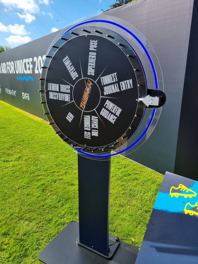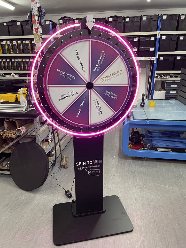 Spin The Wheel is a popular attraction for all types of Promotion, Trade show, Exhibition or Brand Activation. Whats great about our prize wheel is that you can custom brand the wheel to fit with your company branded logos and colour scheme. Spin The Wheel is a showstopper and great if you are trying to grab visitors attention on your Trade stand or booth plus shop launches or raising money for your local charities.