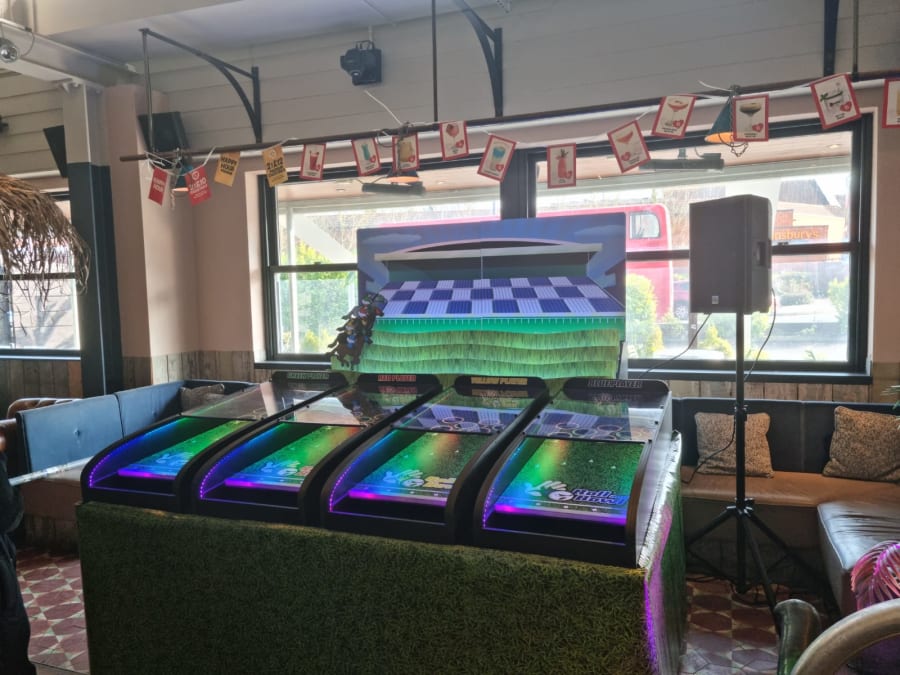 The Kentucky Derby game hire is an exhilarating game that recreates the excitement of the famous horse race, where players roll balls to move their colorful horses down the track. Whether you're looking for an interactive Kentucky Derby rental for a large-scale festival or a Roll & Bowl hire for birthday parties, this classic game offers interactive fun that draws in people of all ages. It’s a game of skill, strategy, and a little bit of luck, making it ideal for team-building, parties, and events that need an engaging, competitive activity.