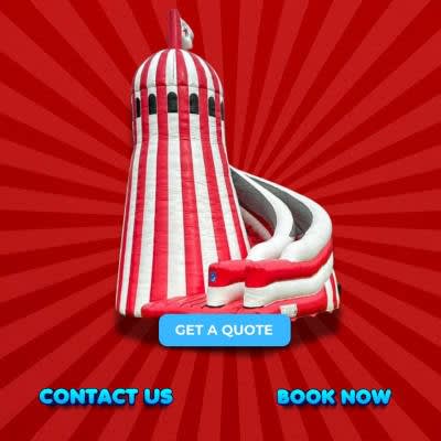 Why not Hire a Traditional inflatable helter skelter slide hire in London for your function, if your looking for the WOW factor. The inflatable helter skelter slide hire in Essex are available in 2 sizes, our one is the largest inflatable slide standing 30ft tall with a platform height is 15ft to slide down. The aim of this item is to climb up to the top by using the stairs and then sit at the top and slide all the way down.